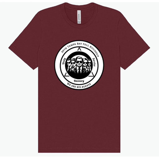 Take home a piece of the Tampa Bay Fall Round-Up with our premium 100% cotton event T‑shirt. Made for comfort and long-lasting wear, this shirt is soft, breathable, and perfect for enjoying the weekend’s activities or representing the Round-Up year‑round. Featuring our official event design, it’s more than just apparel—it’s a meaningful keepsake that celebrates unity, recovery, and the spirit of the fellowship.